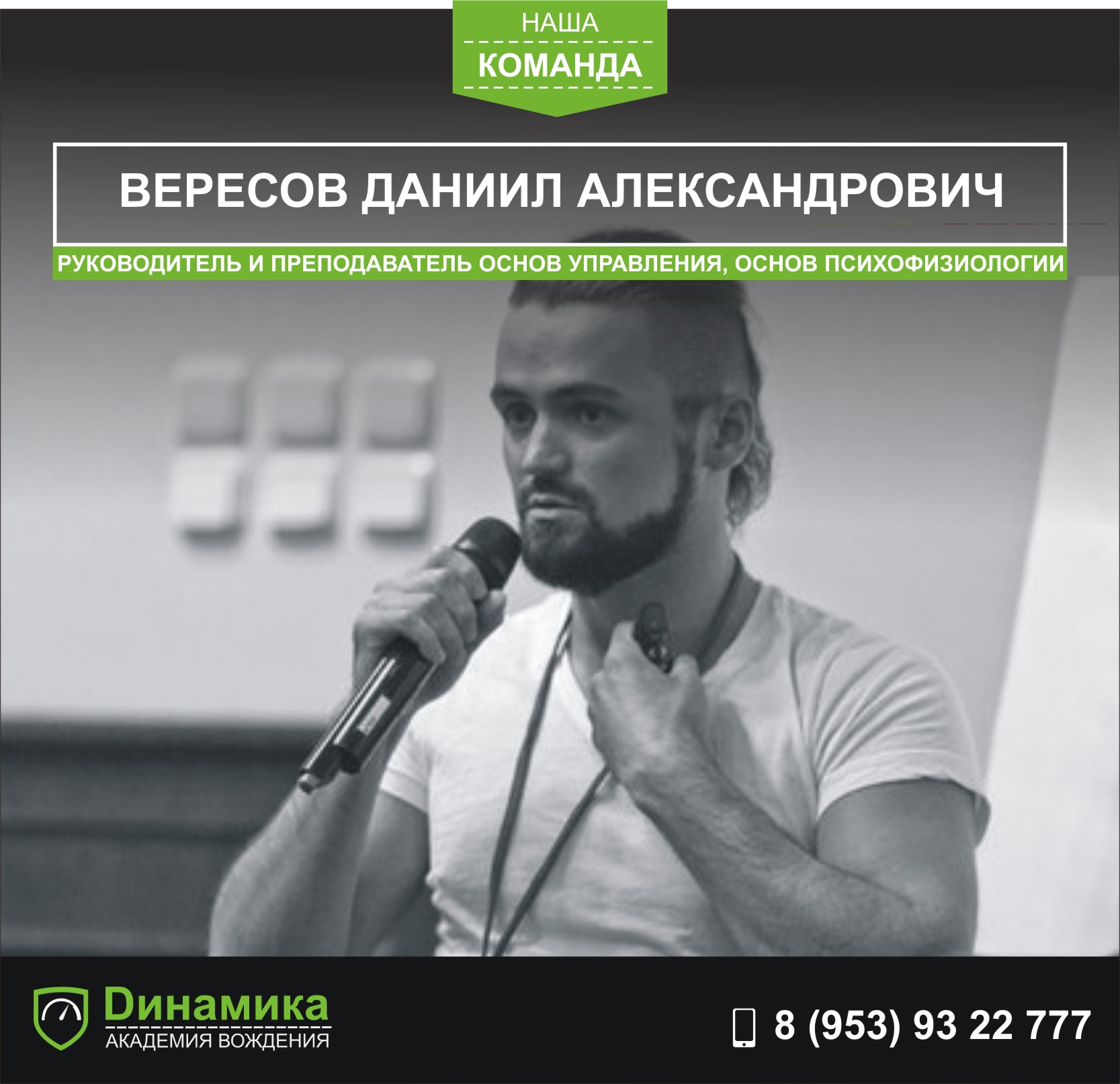 Подготовит вас по Основам управления, рассказав особенности прохождения траекторий, заносов и прочего; а так же, проведет ряд деловых игр, направленных на решение ситуационных задач на дороге; даст упражнение на развитие базовых психофизиологических навыков водителя;