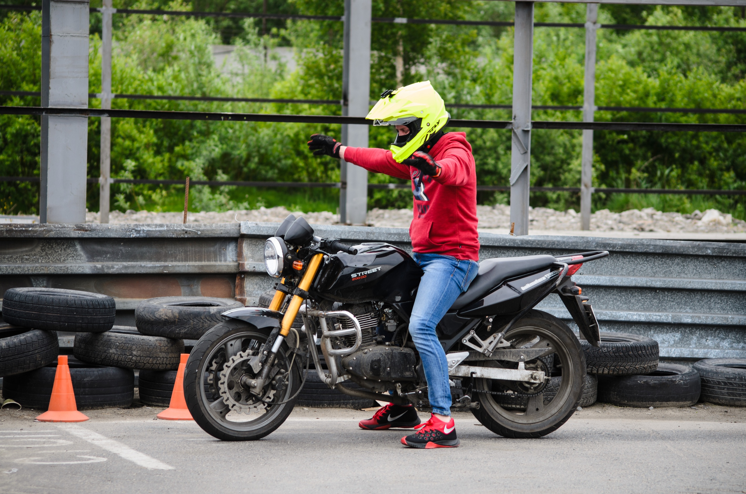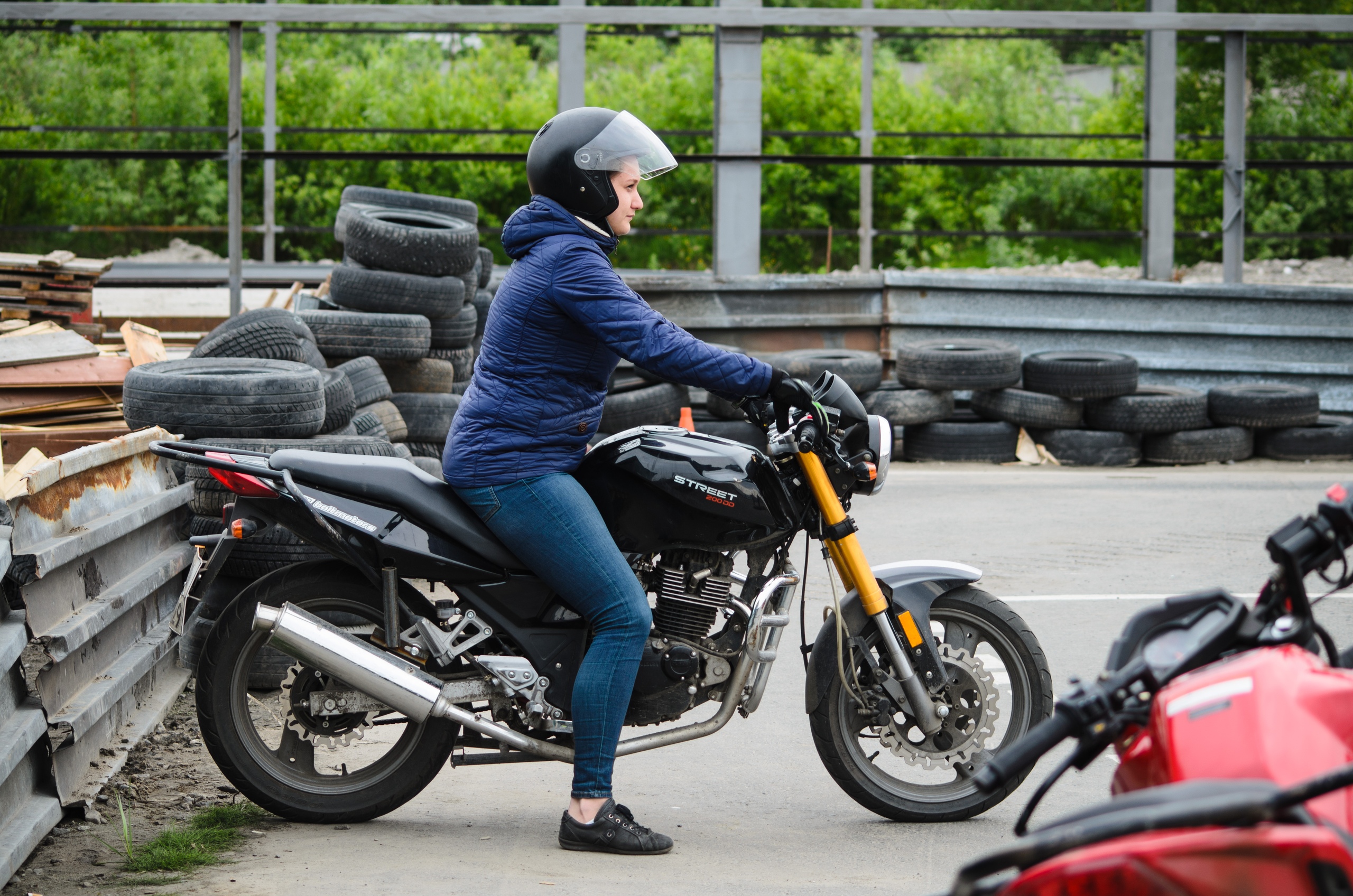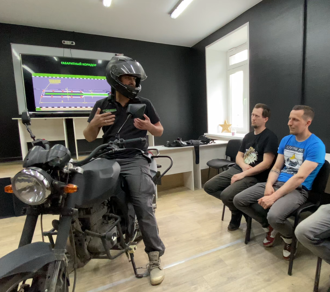 Практические занятие проходят на закрытом безопасном мотодроме. Есть раздевалка, где можно спокойно переодеться и отдохнуть